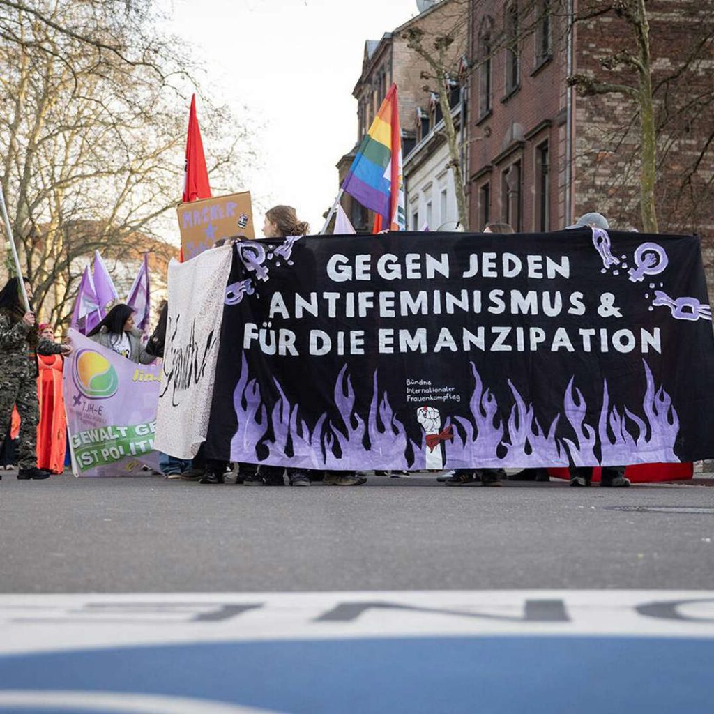 Seit geraumer Zeit ist das Erstarken der extremen Rechten, sowie von reaktionären und antifeministischen Kräften in Deutschland und weltweit zu verzeichnen. Es ist davon auszugehen, dass sich die ohnehin prekäre Lage für Frauen und Queers vielfach zuspitzen wird. Hart erkämpfte Errungenschaften der Frauenbewegung, welche das Leben vieler Frauen verbesserten, wie zum Beispiel der Zugang zu Schwangerschaftsabbrüchen, werden akut angegriffen, oder rückgängig gemacht. Wir werden das nicht hinnehmen! Wir werden weiterhin für die Befreiung der Frau kämpfen! Unsere Antwort lautet: kollektiver, organisierter, feministischer Kampf! Deswegen rufen wir: Frauen organisiert euch! Gegen jeden Antifeminismus und für die Emanzipation!